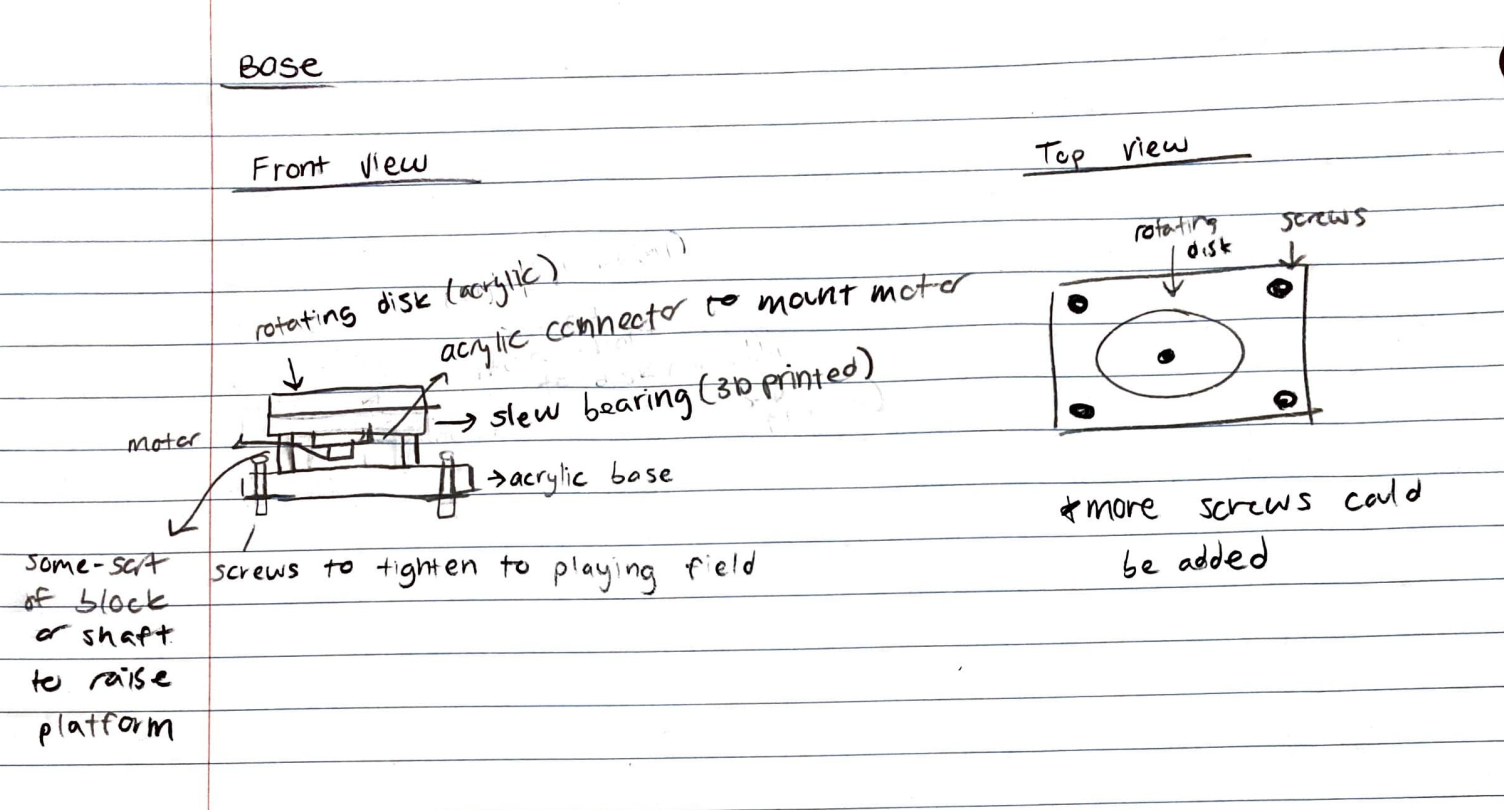 The problem with this design was that I chose the wrong axis of rotation. I changed the axis of rotation and did calculations to determine the amount of torque needed that can be viewed here. Our first prototype was built.