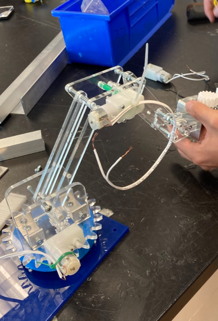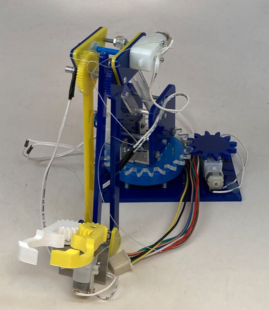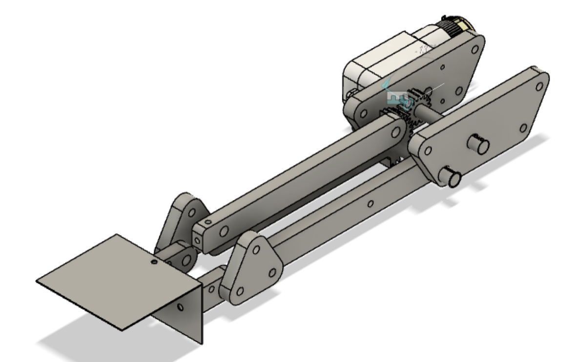 My role was to create the upper joint of a 2 joint robotic arm. I utilized a four-bar linkage mechanism to ensure the gripper was always parallel with the floor. A proof of concept was made to justify the design with cardboard.