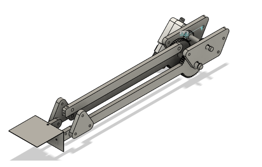 I maximized the linkage lengths and did more hand calculations here to determine the amount of torque needed. Due to the sector gear, it could not rotate 180 degrees. I also made both the linkages have gears to distribute the load more evenly and added more teeth for a larger range of motion.
